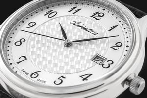UrWrist prezentuje zegarek męski Adriatica Premiere A8000.5223Q. To hołd dla ponadczasowej elegancji i zegarmistrzowskiej precyzji zakorzenionej w szwajcarskiej tradycji. Mechanizm Swiss Made gwarantuje niezawodność, a giloszowana tarcza i delikatnie stylizowane cyfry arabskie dodają subtelności. Koperta ze stali nierdzewnej, szafirowe szkło i czarny pasek z naturalnej skóry to wyraz minimalistycznej estetyki. Zegarek jest wodoszczelny (5 BAR) i antyalergiczny. Oferuje precyzję, przejrzystą tarczę, szafirowe szkło, datownik, giloszowany wzór, wodoszczelność oraz skórzaną bransoletę. W zestawie znajduje się eleganckie pudełko i ściereczka z mikrofibry. Odkryj szwajcarską precyzję i elegancję z Adriatica.