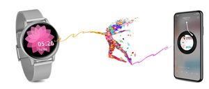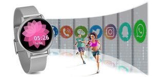 Oto szczegółowy opis smartwatcha G.Rossi SW015-3 w wersji damskiej, srebrnej z bransoletą typu mesh: