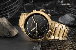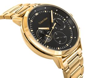 UrWrist prezentuje zegarek męski CALVIN KLEIN Gauge 25200065 + BOX. Ten model z chronografem emanuje techniczną precyzją i klasą, a kontrastujące detale podkreślają dynamiczny charakter zegarka. Solidna, złota bransoleta o szerokich ogniwach dopełnia całości. Zegarek jest idealny zarówno do biura, jak i po godzinach, oferując 24-godzinny czas, datownik i dzień tygodnia. Mechanizm kwarcowy zapewnia wysoką dokładność pomiaru czasu, a szkło mineralne chroni tarczę przed zarysowaniami. Zestaw zawiera oryginalne pudełko CALVIN KLEIN, dedykowaną poduszkę na zegarek oraz kartę gwarancyjną wraz z instrukcją obsługi. Odkryj elegancję i funkcjonalność zegarka CALVIN KLEIN Gauge 25200065 + BOX od UrWrist.